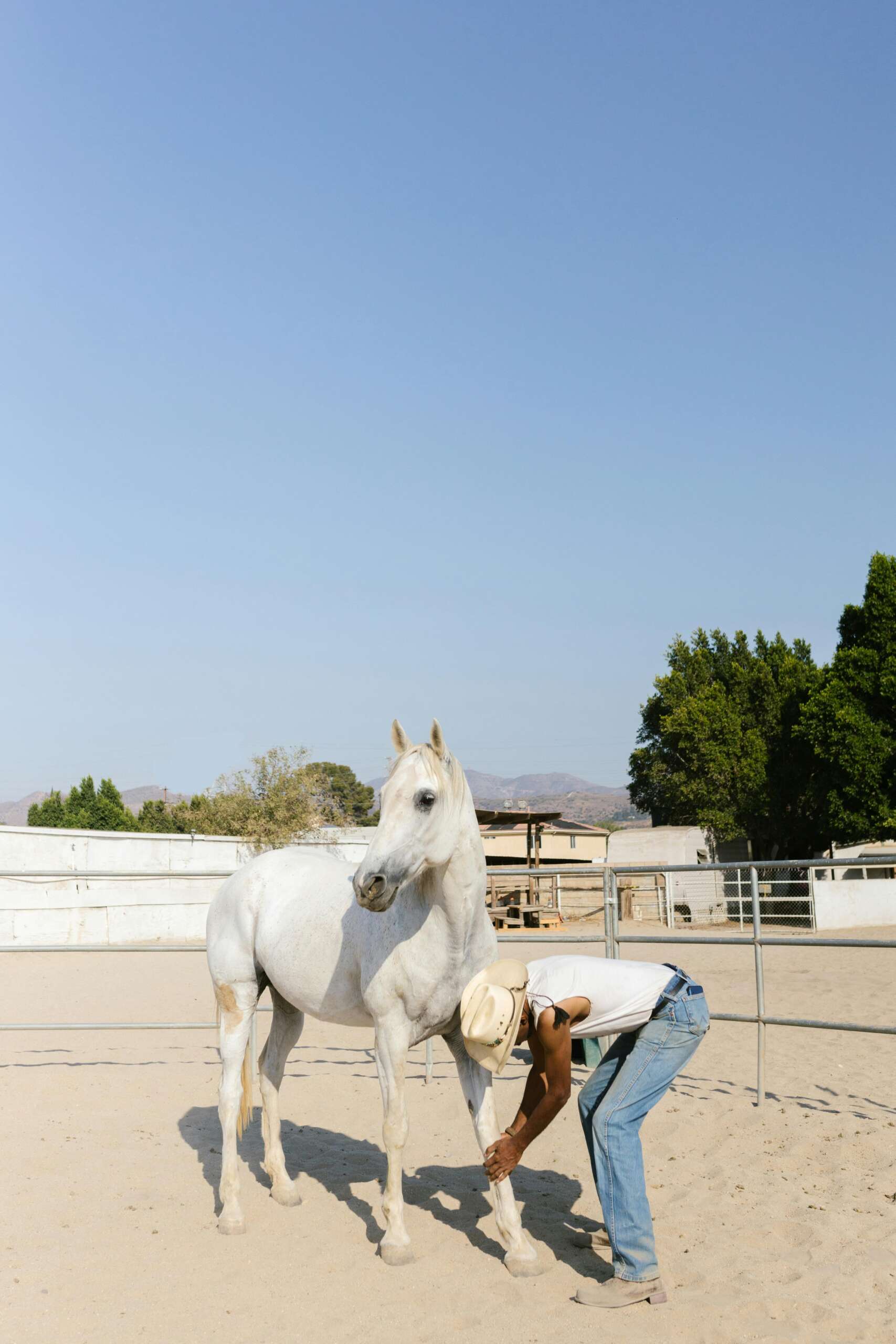 - Refill water buckets and observe the horse’s calmness.